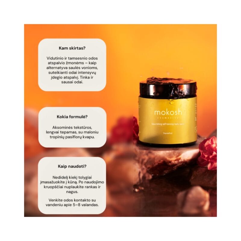Mokosh Maitinamasis savaiminio įdegio kūno balzamas tamsiai odai Passiofruit, 120ml